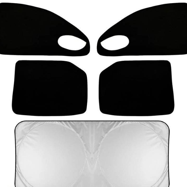 آفتابگیر خودرو پژو از جنسی ساخته شده است که در برابر اشعه ماورای بنفش (UV) مقاوم است. این ویژگی به جلوگیری از آسیب دیدن صندلیها و داشبورد خودرو کمک میکند و از رنگپریدگی جلوگیری میکند.2. مجموعه ۵ عددی: